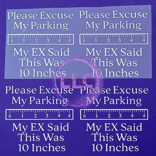 Please Excuse My Parking, My EX Said This Was 10 Inches VEHICLE DECAL / Sticker Permanent Outdoor Vinyl